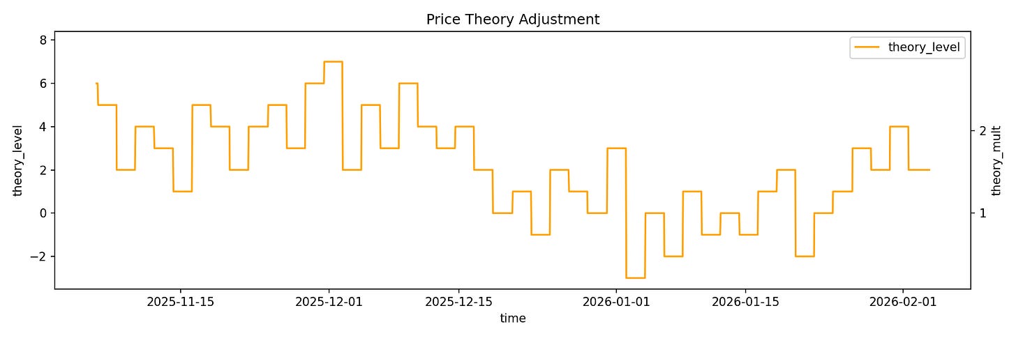 price - 2,price - 1,price,price + 1, andprice + 2values and shuffled. Shuffling is necessary to prevent locking onto some regular periodic phenomenon on the network:The topmost card is picked and the multiplier is set according to