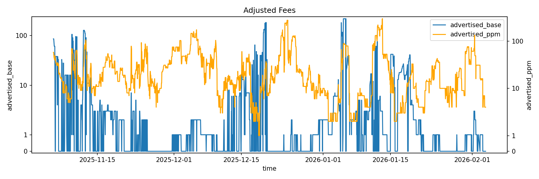 It can adjust forwarding fees to support channel balance and to be competitive on the market. It monitors both the current fee market and its internal state through a set of heuristics, which will be discussed below.
