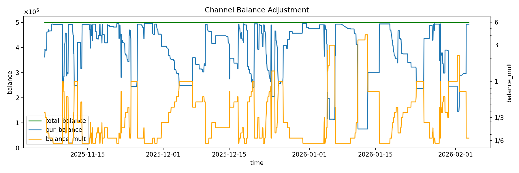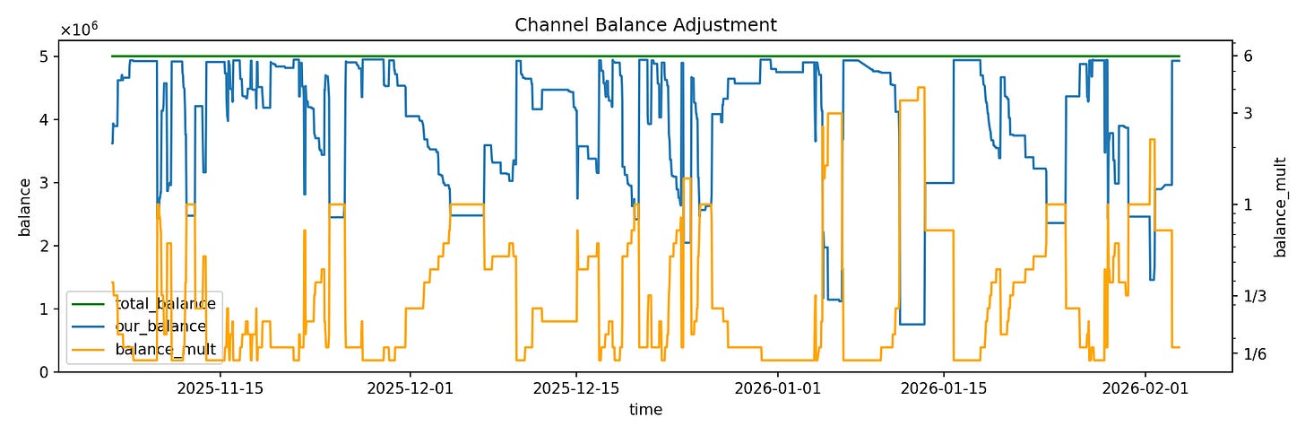 Another multiplier used to modulate the fee rate is based on the balance of the channel.